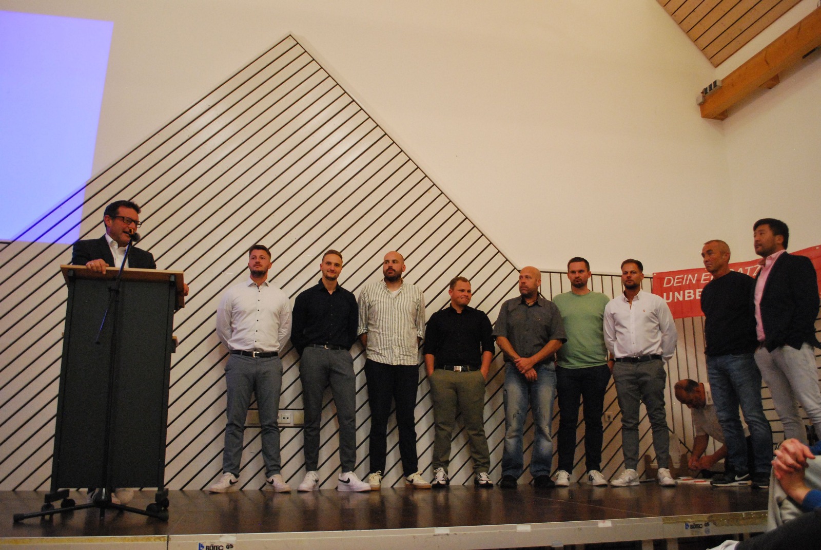 Am vergangenen Samstag, 07.09.2024 fand unser jährlicher Kameradschaftsabend im Dorfgemeinschaftshaus in Friedberg statt. Wie gewohnt wurden wir von Gastgeber Edwin Reber mit herausragendem Essen verwöhnt. Zudem wurde ein tolles Bühnenprogramm von den Breakdancern ATHF (Aqua Team Hunger Force) dargeboten. Im Rahmen der Veranstaltung wurden zudem Ehrungen durchgeführt. Hierbei wurden zwei interne Auszeichnungen für 30 Jahre Schiedsrichtertätigkeit an Thomas Wohnhas sowie für 45 Jahre Schiedsrichtertätigkeit an Behzad Javor verliehen. Die Ehrungen auf Verbandsebene mit der Ehrennadel in Silber für 20 Jahre Schiedsrichtertätigkeit wurden an Werner Schneider, Willi Jäggle und Charly Fischer verliehen. Für die Anzahl der geleiteten Spiele wurden zudem Marvin Reimann und Florian Werkmann für 500 Spielleitungen geehrt. Für die Leitung von 1.000 Spielen konnte Werner Guter ausgezeichnet werden. Die Ehrungen wurden von Philipp Herbst durchgeführt, der als Vertreter des VSRA vor Ort war.